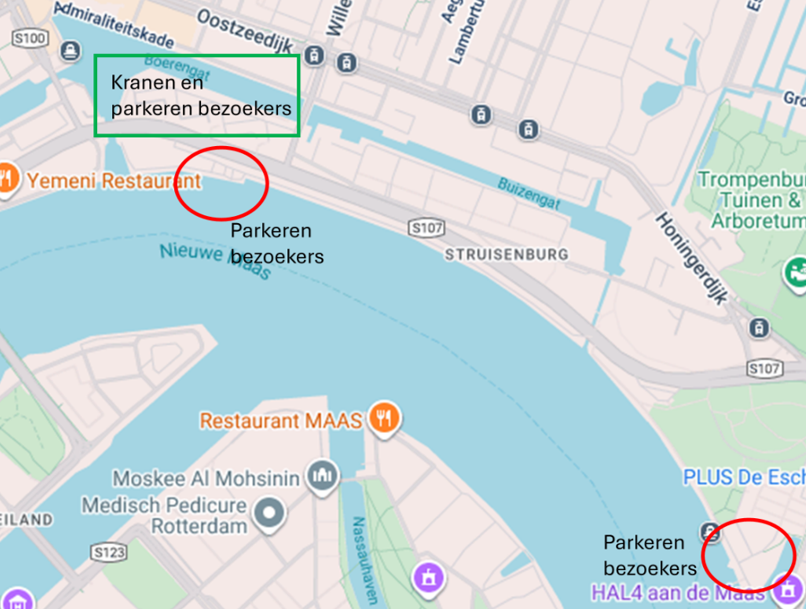 De andere auto’s kunnen een plekje zoeken in de buurt van het kranen of aan de waterkant. Zie onderstaand kaartje.